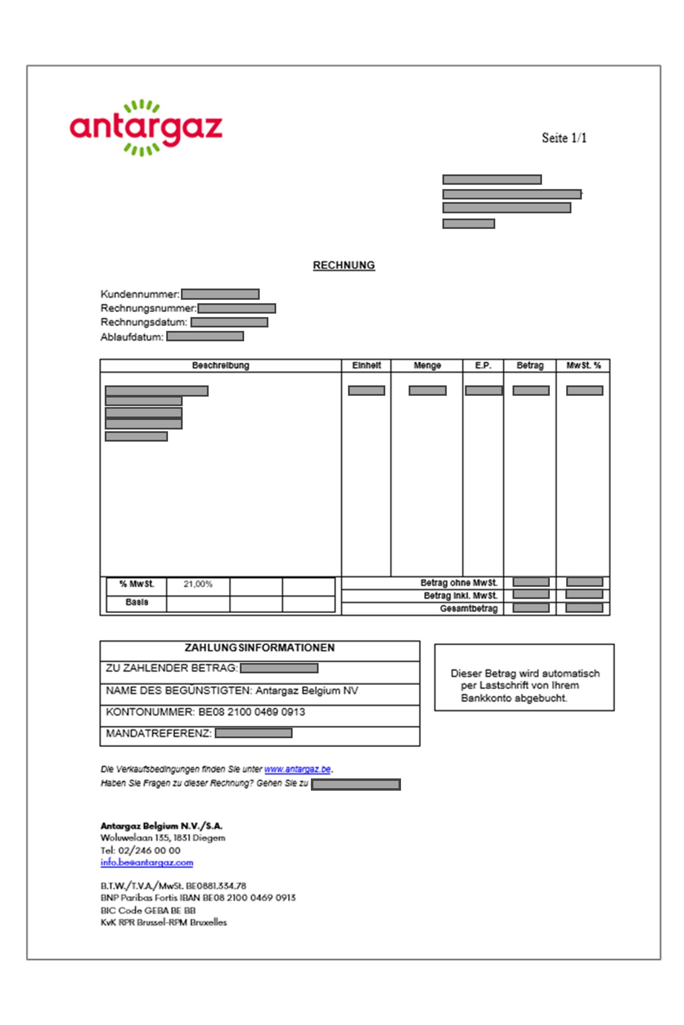Haben Sie eine Lieferung erhalten und bezahlen Sie nicht per Lastschrift? Dann erhalten Sie eine normale Rechnung wie diese per Post.